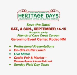 The mission of “Chiricahua–Peloncillo Heritage Days” is to educate and inspire local citizens in understanding the important role that flora, fauna, water and open space play in the health of the Chiricahua–Peloncillo Mountain community, and to highlight the interdependent connection that exists between our natural heritage and the cultural heritage in that region.