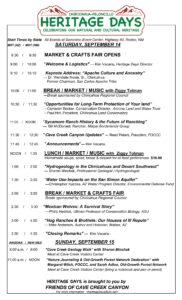 Heritage Days attracts participation by the local and regional community. Events at the Geronimo Event Center feature a special Keynote address and talks by 8 professional speakers, a large covered Farmer’s Market and Crafts Fair, and a Field Day with interpretive site tours and Free Film Showings. Most attendees are residents of southeastern Arizona and southwestern New Mexico, and the event is promoted via news releases to regional media and through direct-mail to 1,000 regional residents.