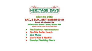 Heritage Days events are brought to you by the Portal, Arizona, non-profit organization Friends of Cave Creek Canyon. Additional support for the event is generated through collaboration with local and regional volunteers and businesses and through private donations.