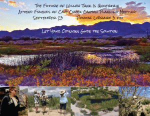 Willow Tank is being strongly affected by extreme heat and drought. In addition to the drought’s effects on all the plant life, the extraordinary dryness requires that native shrubs and grasses planted nine years ago to provide cover and food for birds require water to survive. To keep this oasis alive, a new manager and volunteers are needed for myriad chores in addition to watering twice a week during the hot and dry summer months.